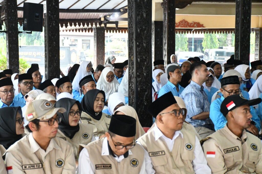 PURBALINGGA – Sebanyak 569 calon jemaah haji asal Kabupaten Purbalingga resmi dilepas oleh Bupati Purbalingga, Fahmi M Hanif dalam acara di Pendapa Dipokusumo, Rabu (22/4/2026). Ratusan jemaah tersebut terbagi dalam dua kelompok terbang (kloter), yakni kloter 68 dan 69. Mereka dijadwalkan berangkat menuju Tanah Suci melalui Bandara Adi Soemarmo (Embarkasi Solo) pada 14 dan 15 Mei 2026.