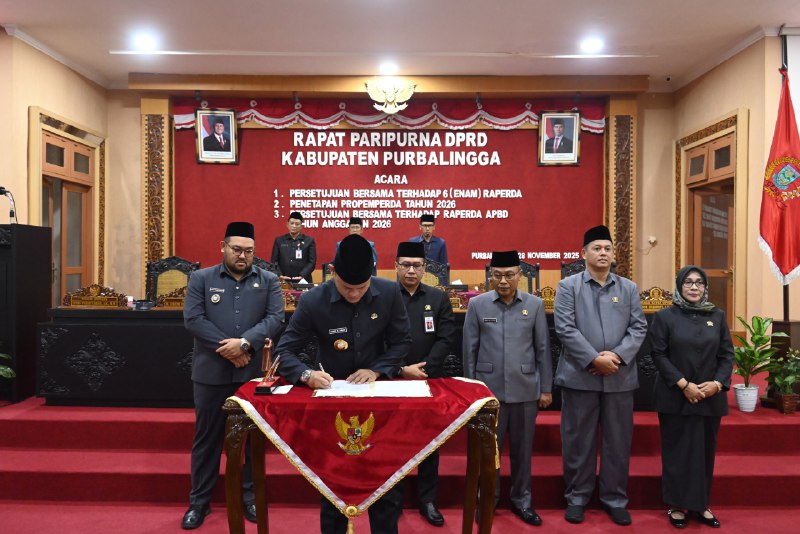 PURBALINGGA – Pemerintah Kabupaten Purbalingga bersama DPRD resmi menyetujui Rancangan Peraturan Daerah (Raperda) tentang APBD Tahun Anggaran 2026 dalam Rapat Paripurna yang digelar Jumat (28/11/2025). Persetujuan bersama ini menjadi tonggak penting bagi kesiapan pelaksanaan program pembangunan daerah pada tahun mendatang.