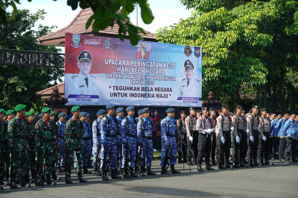 PURBALINGGA – Wakil Bupati Purbalingga Dimas Prasetyahani menegaskan pentingnya kesiapsiagaan, disiplin, dan ketangguhan seluruh elemen bangsa sebagai fondasi dalam mewujudkan Indonesia yang maju. Hal tersebut disampaikan saat memimpin Upacara Peringatan Hari Bela Negara ke-77 di Halaman Pendapa Dipokusumo, Selasa (23/12/2025).