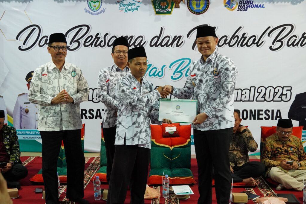 “Guru-guru, khususnya madrasah yang belum PPPK, belum inpassing, dan belum menerima TPG harus diperhatikan dan diperjuangkan kesejahteraannya. Apa yang bisa dilakukan oleh pemerintah daerah, semaksimal mungkin akan kami usahakan,” ujar Bupati Fahmi saat menghadiri kegiatan Doa Bersama dan Ngobrol Bareng Masbup yang digelar PGSI Kabupaten Purbalingga dalam rangka Hari Guru Nasional di Pendapa Dipokusumo, Sabtu (29/11/2025).
