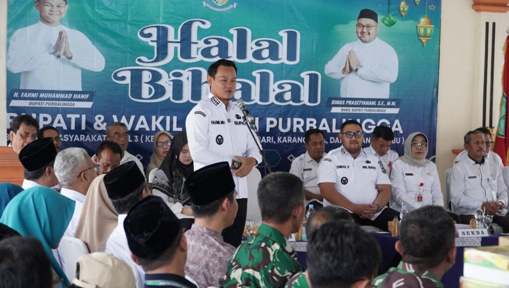 PURBALINGGA – Kegiatan silaturahmi dan halalbihalal Idulfitri 1447 H yang melibatkan warga Kecamatan Mrebet, Bobotsari, Karangjambu, dan Karangreja dipusatkan di Pendapa Kanduruan Kecamatan Bobotsari, Rabu (8/4/2026). Kegiatan ini menjadi momentum mempererat kebersamaan sekaligus sarana penyampaian informasi penting dari pemerintah daerah kepada masyarakat.