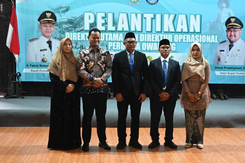 PURBALINGGA – Bupati Purbalingga, Fahmi Muhammad Hanif, resmi melantik dan mengambil sumpah dua orang Direktur Perumda Owabong pada Kamis (7/8/2025) di Andrawina Hall, Kompleks Hotel Owabong, Kecamatan Bojongsari. Arif Taat Ujiyanto dilantik sebagai Direktur Utama dan Adi Jaya Pamungkas sebagai Direktur Operasional untuk masa jabatan 2025–2030.