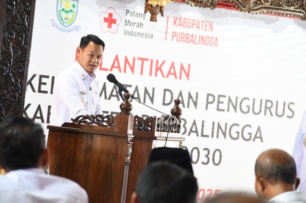 PURBALINGGA – Bupati Purbalingga, Fahmi Muhammad Hanif menghadiri sekaligus menyaksikan Pelantikan Dewan Kehormatan dan Pengurus Palang Merah Indonesia (PMI) Kabupaten Purbalingga Periode 2025–2030 serta Musyawarah Kerja Kabupaten (Mukerkab) yang digelar di Pendopo Dipokusumo, Jumat (22/8/2025). Pelantikan dilakukan langsung oleh Ketua PMI Provinsi Jawa Tengah, Sarwa Pramana.
