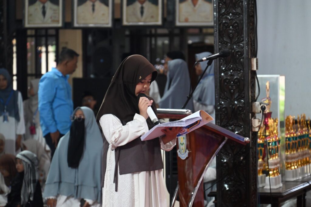 PURBALINGGA – Momen haru mewarnai penutupan Gema Ramadhan Ke-26 Kabupaten Purbalingga saat seorang santri cilik menyerahkan langsung surat berisi harapan masa depan kepada Bupati Fahmi Muhammad Hanif, Ahad (1/3/2026) di Pendopo Dipokusumo.