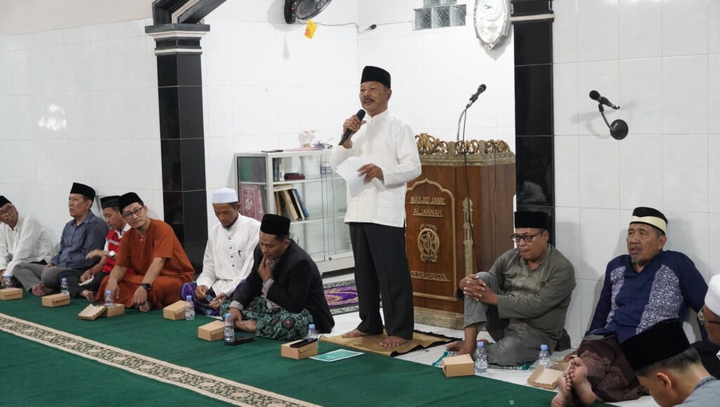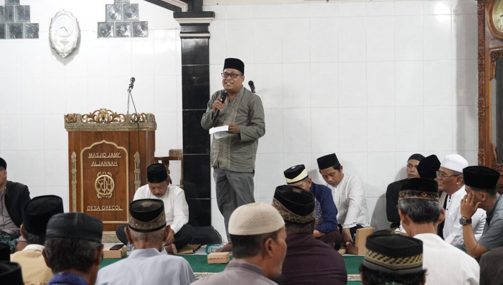 PURBALINGGA – Menjelang Lebaran, masyarakat diimbau untuk lebih bijak dalam mengelola keuangan dan menahan perilaku konsumtif di tengah potensi kenaikan harga kebutuhan pokok. Hal tersebut disampaikan Bupati Purbalingga melalui Staf Ahli Bupati Bidang Administrasi Umum dan SDM, Pandi, dalam kegiatan Tarawih Keliling (Tarling) Pemerintah Kabupaten Purbalingga di Masjid Al Jannah, Desa Grecol, Kecamatan Kalimanah, Jumat (13/3/2026).