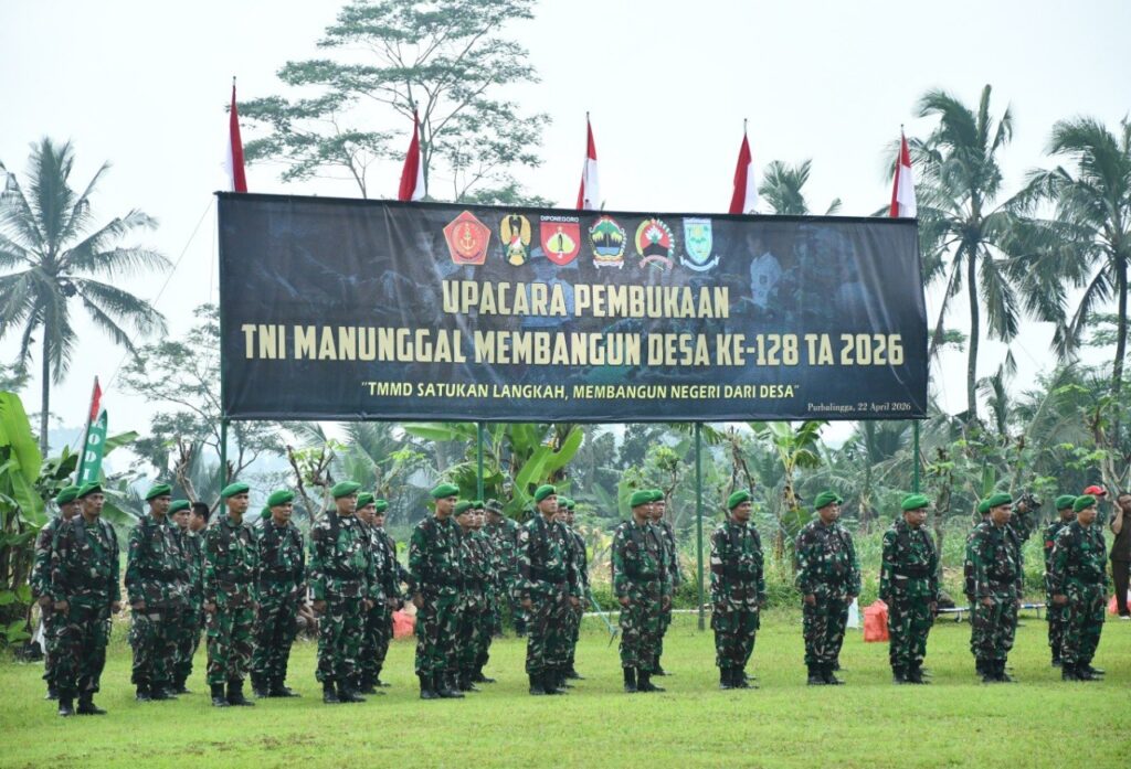 PURBALINGGA – Kegiatan TNI Manunggal Membangun Desa (TMMD) Reguler ke-128 Tahun 2026 resmi dibuka oleh Wakil Bupati Purbalingga, Dimas Prasetyahani, Rabu (22/4/2026) di Desa Krangean, Kecamatan Kertanegara. Upacara pembukaan tersebut dihadiri jajaran Forkopimda, TNI, serta masyarakat setempat.